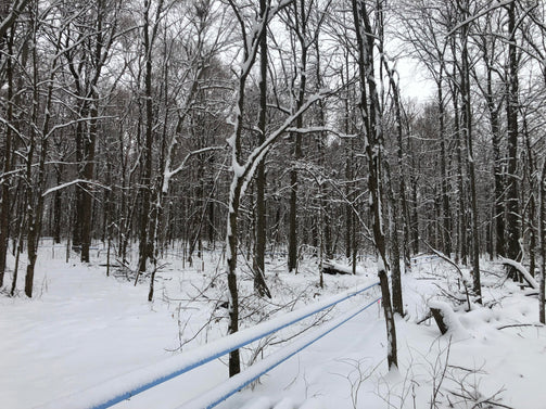 Did you know it takes approximately 50 gallons of sap to make 1 gallon of pure maple syrup?! Sap is collected from trees & flows through tubing to a holding tank. It is gathered & brought to the sugarhouse to boil down. Once inside the sugarhouse it enters the evaporator and boiled to the delicious golden sweetener we know as Maple Syrup. It is then bottled & ready to serve on your table!